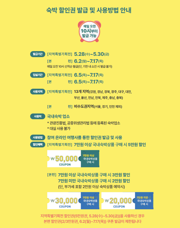 이번 행사는 지역경제를 활성화하고 국민들의 여행 부담을 줄이기 위한 취지로 진행되며,